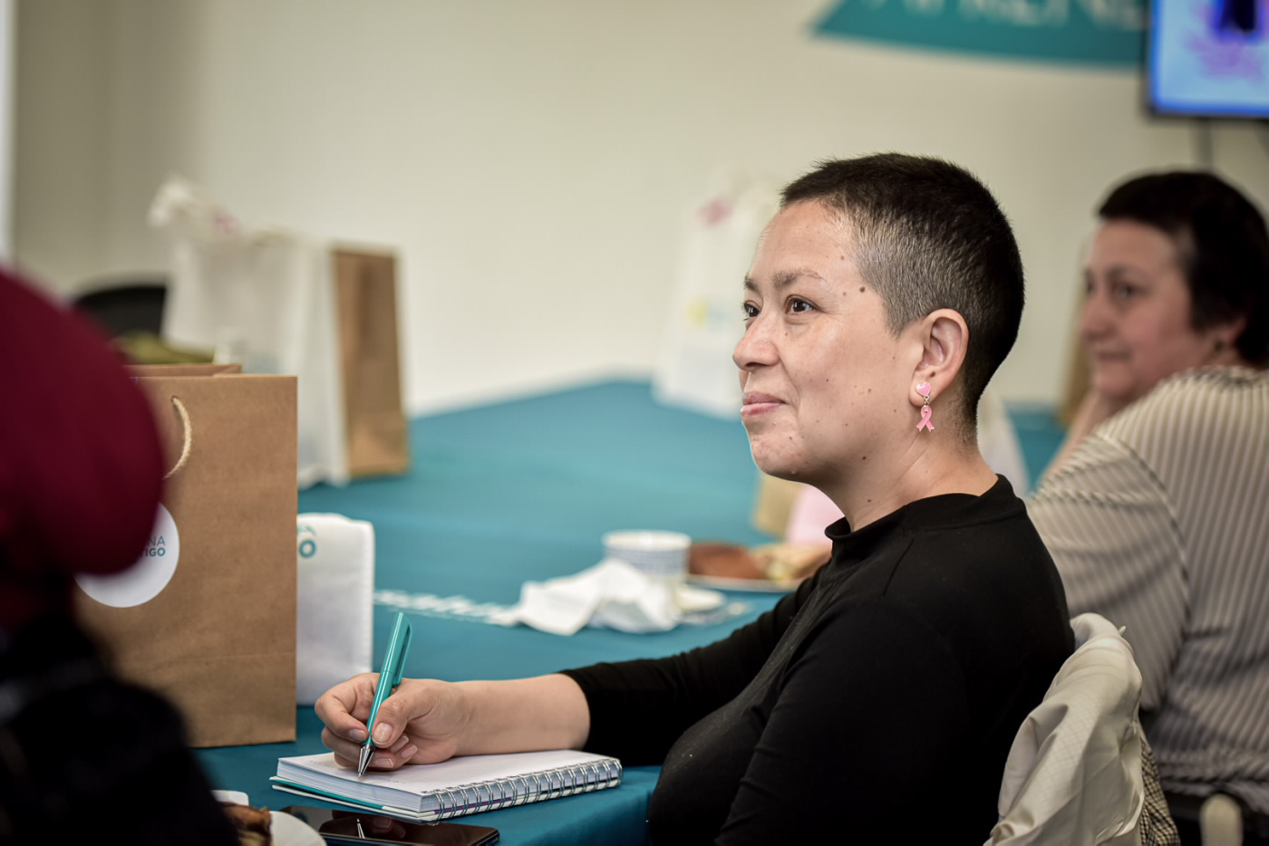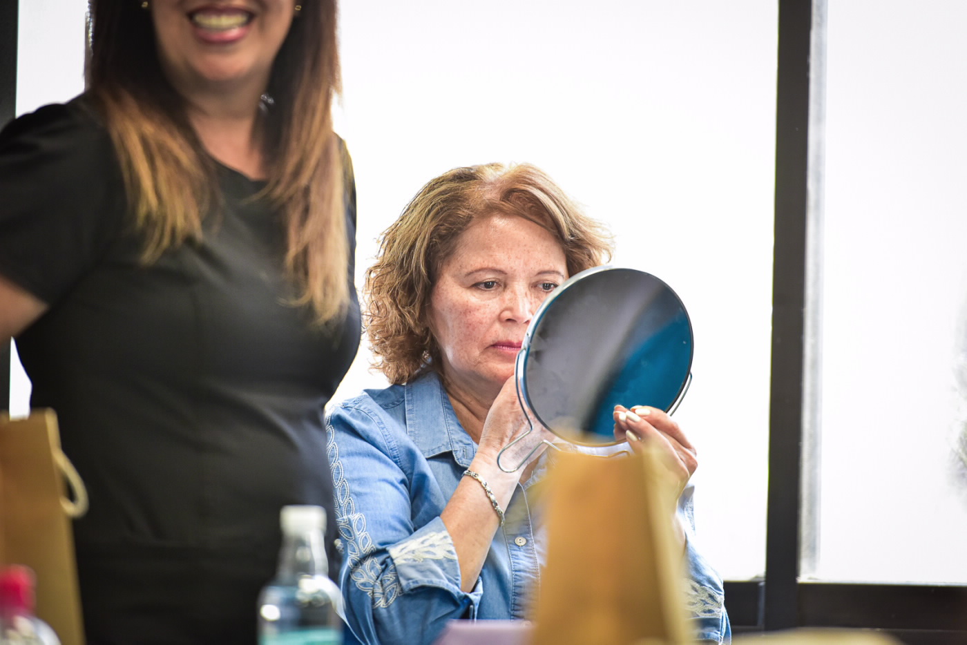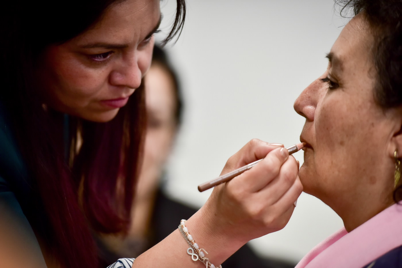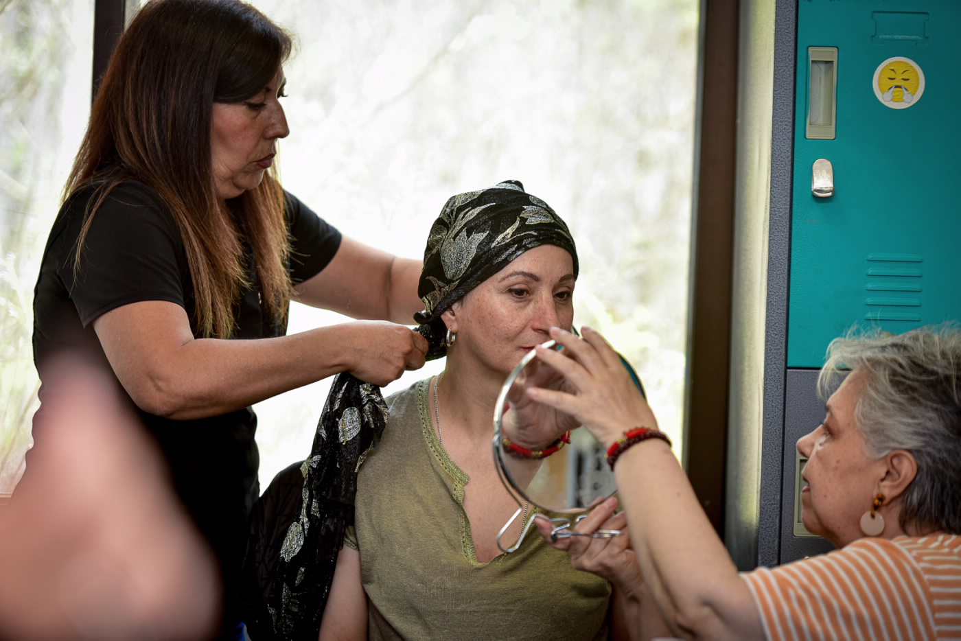 Patricia Santibañez, Cosmetóloga - Especialista en estética oncológica y directora de la Fundación Oncounidas, fue quien dirigió estos talleres donde las participantes aprendieron sobre cuidados de la piel, tips de maquillaje correctivo, consejos prácticos para resaltar su rostro, uso de pañuelos y turbantes, además de compartir momentos de conversación y apoyo mutuo.