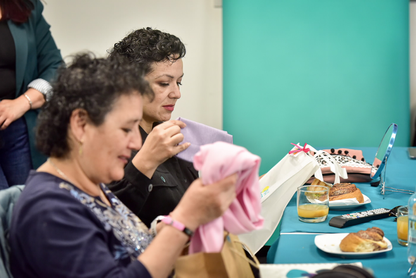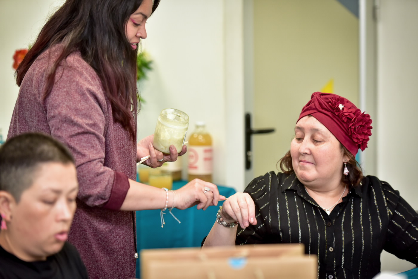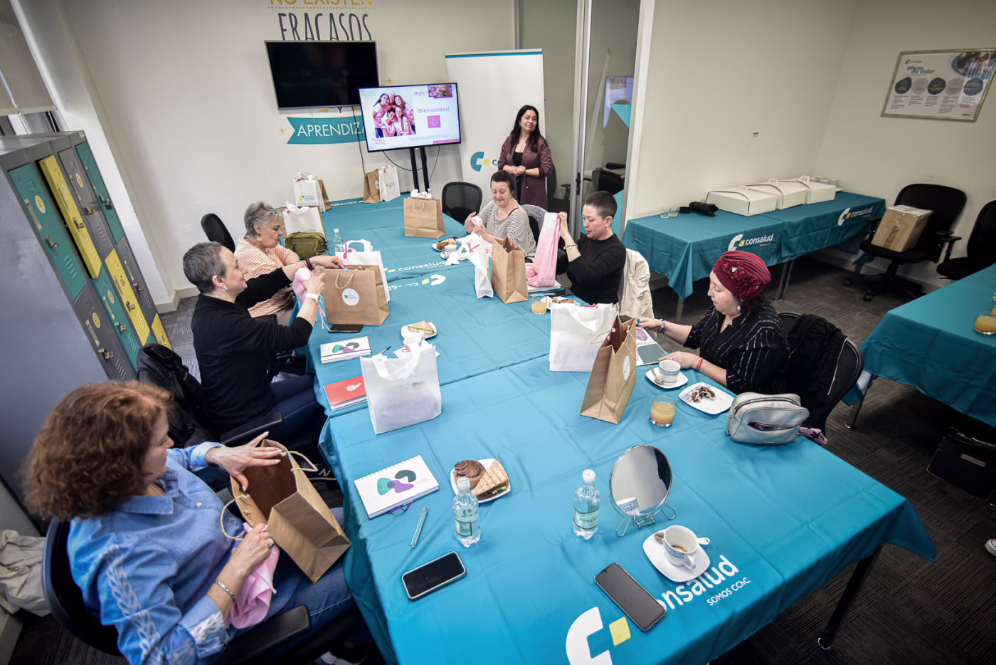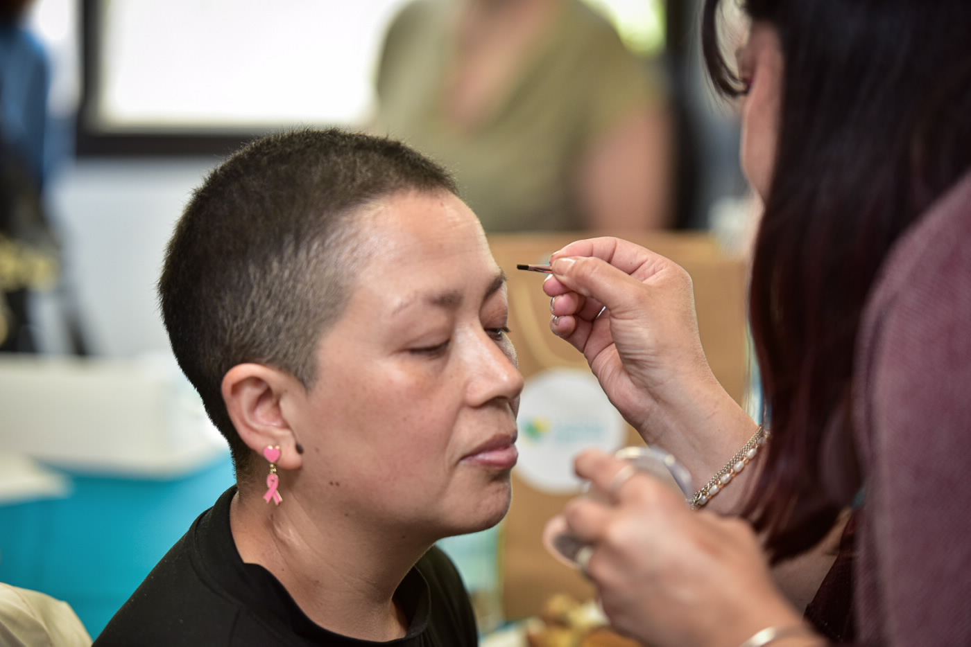 Patricia Santibañez, Cosmetóloga - Especialista en estética oncológica y directora de la Fundación Oncounidas, fue quien dirigió estos talleres donde las participantes aprendieron sobre cuidados de la piel, tips de maquillaje correctivo, consejos prácticos para resaltar su rostro, uso de pañuelos y turbantes, además de compartir momentos de conversación y apoyo mutuo.